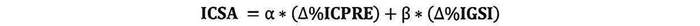 En el ICSA es posible explicar la variación del costo de prestaciones de salud por el efecto de la variación porcentual conjunta del índice de cantidad de prestaciones bonificadas por las Isapres (Δ%ICBI) y por el efecto de la variación porcentual del índice de valor unitario bonificado por las Isapres (Δ%IVUBI).