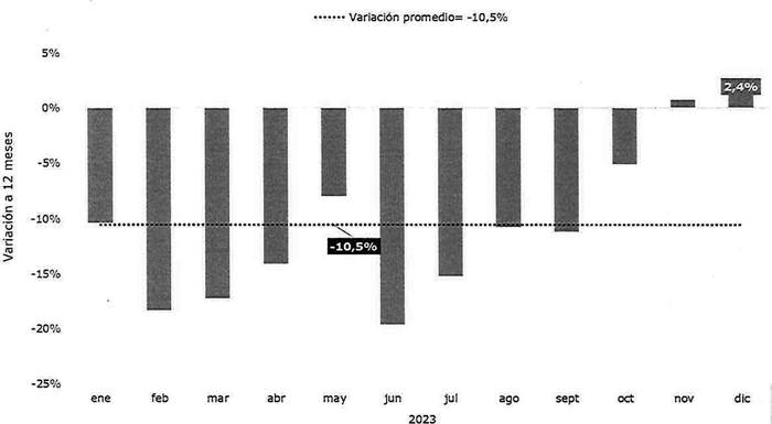 El índice de variación del costo en subsidios de incapacidad laboral de las Isapres, abiertas y cerradas, Δ%IGSI, de 2023 en relación con 2022, registró una disminución de -10,5%.