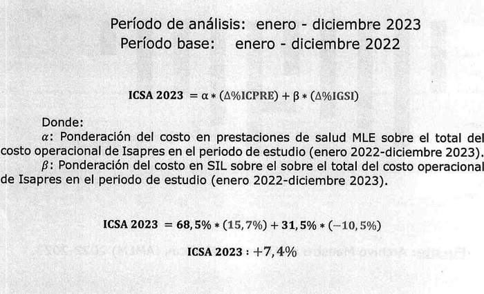 El cálculo del ICSA 2023 obtenido de la variación conjunta del costo en prestaciones de salud y del costo en Subsidios de Incapacidad Laboral de la Isapre.