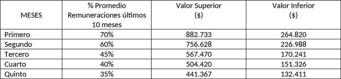 1. Que el artículo 25 de la ley N° 19.728 establece que el monto de las prestaciones con cargo al Fondo de Cesantía Solidario corresponderá a ciertos porcentajes del promedio de las remuneraciones devengadas por el trabajador en los diez meses anteriores al término de la relación laboral, montos que estarán afectos a valores superiores e inferiores para cada uno de los meses señalados en ese artículo;