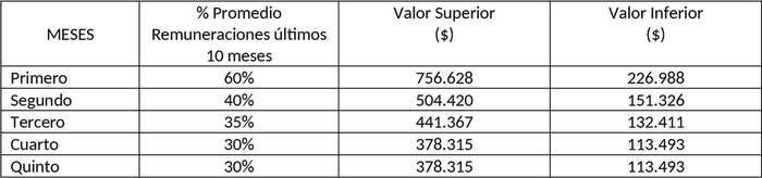 2. Establécese que, desde el 1 de marzo de 2024 hasta el 28 de febrero de 2025, los valores superiores e inferiores a que se refiere el artículo 70 de la ley N° 19.728, independientemente del tipo de contrato, serán los siguientes: