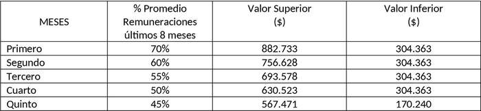 3. Que, a su vez, el artículo 70 de la ley N° 19.728 establece que el monto de las prestaciones mejoradas con cargo al Fondo de Cesantía Solidario, en caso de estado de catástrofe por calamidad pública, zona afectada por catástrofe o alerta sanitaria que implique la paralización de actividades, corresponderá a ciertos porcentajes del promedio de las remuneraciones devengadas por el trabajador en los ocho meses anteriores al término de la relación laboral, montos que estarán afectos a valores superiores e inferiores para cada uno de los meses señalados en el citado artículo 70;
