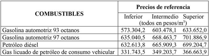 DETERMINA PRECIOS DE REFERENCIA PARA COMBUSTIBLES DERIVADOS DEL PETRÓLEO