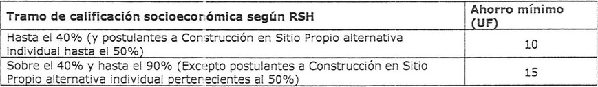 4.2. Los postulantes al presente llamado deben acreditar haber enterado el siguiente ahorro mínimo, conforme la calificación socioeconómica que presenten a la fecha de su incorporación al proyecto.