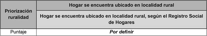 c. Priorización por vivir en localidad rural: Los/as postulantes obtendrán puntaje considerando si su hogar se encuentra ubicado en alguna localidad rural, según información del Registro Social de Hogares.