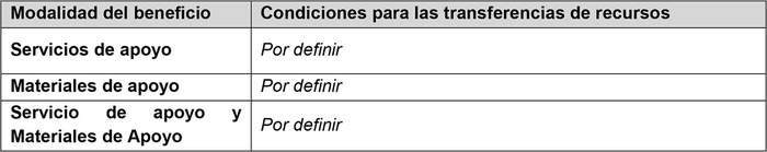 c. Modalidad Mixta de Servicios de Apoyo y Materiales de Apoyo: Se dirige al financiamiento de estudiantes que soliciten las modalidades Servicios de Apoyo y Materiales de Apoyo, contando con el monto total máximo que indique el Alcance Presupuestario (Anexo Nº1), para cada año.