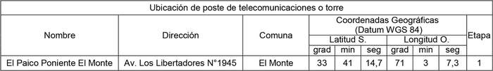 1. Autorízase a la concesionaria para instalar, operar y explotar una (1) torre de telecomunicaciones, destinada a soportar sistemas radiantes, según se indica a continuación: