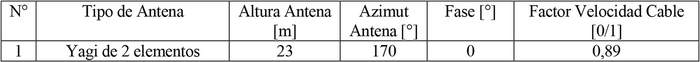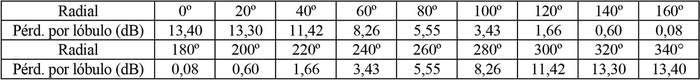 - Arreglo de antena de acuerdo a la siguiente tabla:
