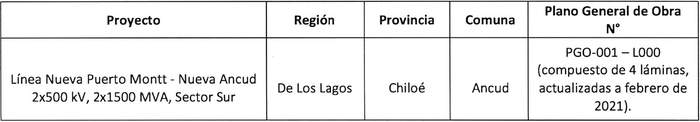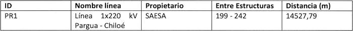En su recorrido, las instalaciones de la "Línea Nueva Puerto Montt-Nueva Ancud 2x500 kV, 2x1500 MVA, Sector Sur", afectará la siguiente línea eléctrica, obra e instalación existente:
