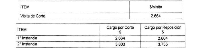 El prestador podrá cobrar por concepto de corte y reposición del suministro a usuarios morosos los siguientes cargos en las instancias que se indican: