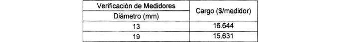 El prestador podrá cobrar por concepto de verificación de medidores el Cargo * IN14 de acuerdo a los siguientes valores: