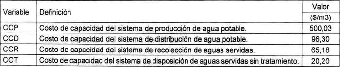Al costo de capacidad del sistema de producción CCP se le deberá adicionar el costo denominado "Aportes de financiamiento reembolsables por capacidad de producción de agua potable a nivel de intermediarios para usuarios facturados por el concesionario INM SpA", de acuerdo a lo señalado en el decreto tarifario de Esval S.A. El mecanismo de indexación de este costo será el que establezca el decreto tarifario de la empresa Esval S.A.