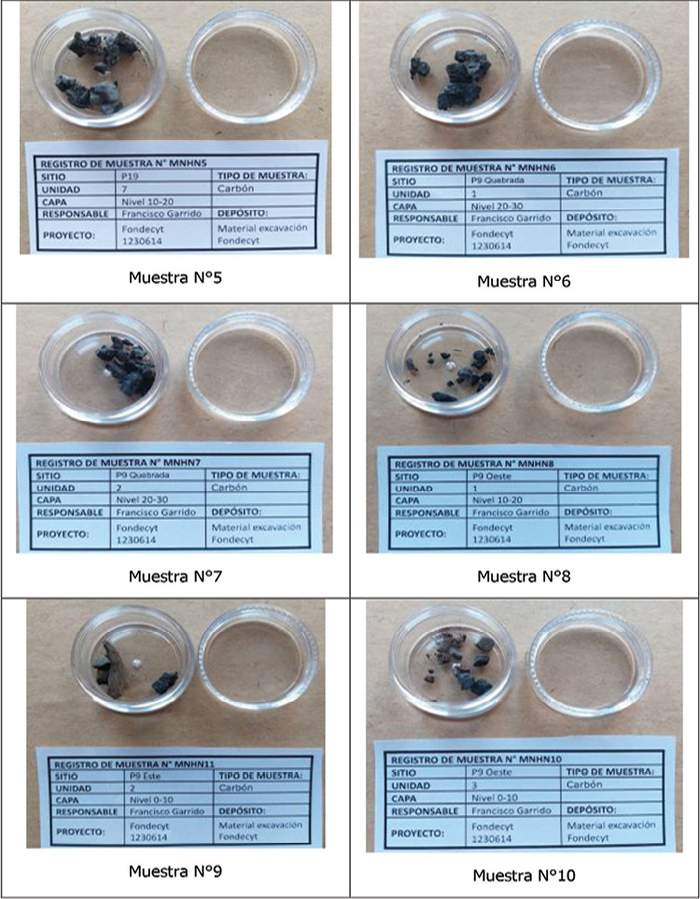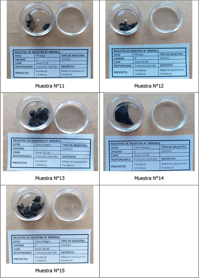 Artículo 2°: Autorízase la extracción desde el territorio nacional, a contar de la fecha de publicación del presente decreto, de 15 muestras arqueológicas de carbón provenientes de los sondeos arqueológicos realizados en la localidad de Cachiyuyo de Llampos, en la Región de Atacama, en el marco del proyecto Fondecyt 1230614 "Especialización artesanal, cambios sociales y continuidad de prácticas en las comunidades mineras de Copiapó durante los últimos 2000 años". La salida de las muestras fue solicitada por Francisco Garrido y a continuación se individualizan:
