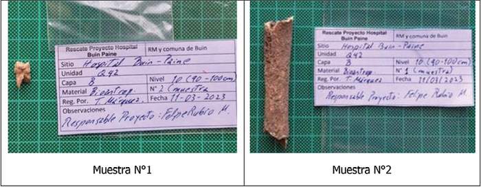 Artículo 7°: Autorízase la extracción desde el territorio nacional, a contar de la fecha de publicación del presente decreto, de dos muestras arqueológicas bioantropológicas (fragmento óseo de fémur y pieza dental) al extranjero, a la Universidad de Georgia, Estados Unidos, provenientes del rescate arqueológico realizado en el área del proyecto Reposición Hospital Buin-Paine, en la Región Metropolitana. La salida de las muestras fue solicitada por Felipe Alejandro Rubio Munita y a continuación se individualizan: