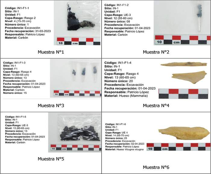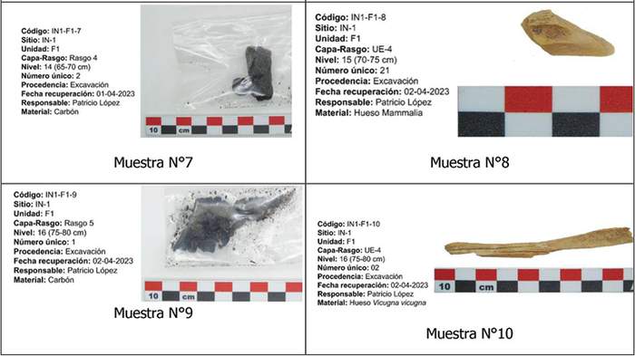 11) Que, don Patricio Gonzalo López Mendoza, arqueólogo, solicitó permiso para salida de 14 muestras arqueológicas al extranjero con destino al Laboratorio DirectAMS, en la ciudad de Bothell, Estados Unidos (Ingreso CMN N°7040-2023); se trata de 8 muestras de carbón y 6 de osteofauna, actualmente depositadas en el Museo de Historia Natural y Cultural del Desierto de Atacama (MUHNCAL), obtenidas de los sitios Infieles-1 (Salar de Infieles), MA-41 (Salar de Maricunga) y YH-02 (cuenca alta del río Jorquera), en la Región de Atacama. Las muestras serán sometidas a análisis destructivos de datación por C14.