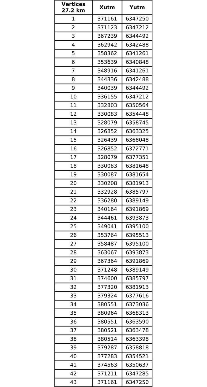 1. Establézcase, a partir del 4 de abril de 2024, como área reglamentada, el polígono de 43 vértices, determinado por las coordenadas UTM, señaladas a continuación: