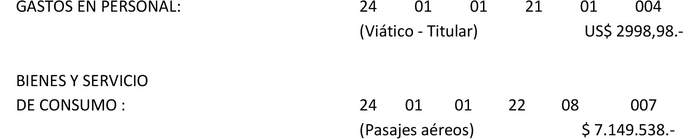 IV. Impútese el gasto por viático en dólares que demandó esta comisión de servicio al extranjero, en su equivalente en moneda nacional, al presupuesto vigente, correspondiente a la Subsecretaría de Energía, ítem: