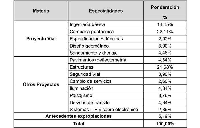 3.3.2 Los montos definitivos por concepto del desarrollo de los Proyectos Viales, Otros Proyectos y Antecedentes de Expropiaciones que forman parte de los proyectos de ingeniería de detalle denominados "PID Obras cambio de trazado Sector 2" y "PID extensión del Sector 2", que se indican en los numerales 2.2 y 2.3 de la cláusula segunda precedente, serán reconocidos el último día del mes en que el Inspector Fiscal apruebe cada una de las especialidades que componen dichos proyectos de ingeniería, conforme a los porcentajes que se fijan en el siguiente cuadro: