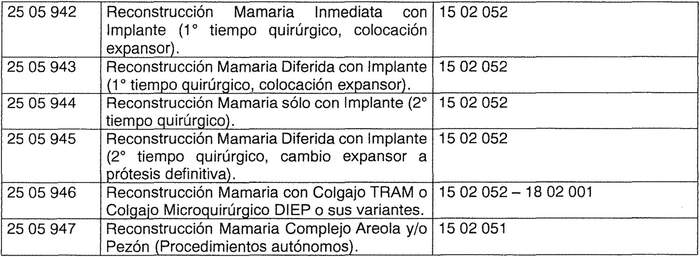 Estas prestaciones deben ser efectuadas por médico cirujano con especialidad en cirugía/ cirujano con especialidad en obstetricia y ginecología o médico cirujano con especialidad en cirugía plástica y reparadora, ambos PAD incluyen fármacos, dispositivos, insumos, expansor/implante/prótesis. Límite financiero 2 prestaciones vida a excepción del PAD 2505947, el cual tiene un límite financiero de 1 prestación año beneficiario. Solo podrán acceder a los PAD del grupo 25 subgrupo 05 beneficiarios con diagnóstico de cáncer de mama en etapa diagnóstica, terapéutica o recidiva, la orden médica para la emisión del PAD debe ser suscrita por médico especialista en oncología, indicando el diagnóstico del beneficiario.