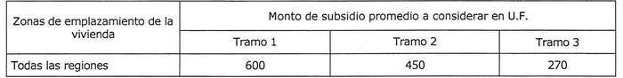 4.1. En la modalidad de adquisición de viviendas, tratándose de postulaciones a los tramos 1, 2, y 3, se considerarán los valores promedio que a continuación se indican, sin perjuicio de que, para su aplicación deba determinarse el valor real de pago que resulte de aplicar las fórmulas correspondientes, según lo indicado en los artículos 64 y 67 del DS Nº 1 (V. y U.), de 2011, respectivamente, según corresponda: