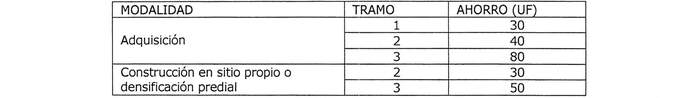 6. Para postular al llamado a que se refiere el número 1. de esta resolución, los postulantes, sus cónyuges o convivientes civiles deberán acreditar que cumplen con el siguiente ahorro mínimo exigido para el tramo y modalidad a que postulen: