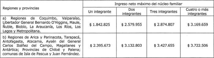 A las familias que postulen a los tramos 1 y 2 no se les exigirá un límite máximo de ingresos, considerándose únicamente los porcentajes de vulnerabilidad señalados, como tampoco se les exigirá un límite de ingresos máximos a las familias que postulen al tramo 3 y que estén dentro del 90% más vulnerable de la población nacional.