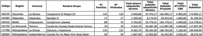 El detalle de los recursos comprometidos por concepto de subsidio para las postulaciones seleccionadas en el resuelvo anterior y que por este acto se asignan, se informa en el cuadro que se adjunta como anexo y que forma parte integrante de la presente resolución.