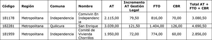 3. Asígnase al grupo organizado seleccionado en el Resuelvo 2., por concepto de pago por los Servicios de Asistencia Técnica, por las Labores de Fiscalización Técnica de Obra y pago de Aranceles al Conservador de Bienes Raíces para el desarrollo de su proyecto, los montos expresados en Unidades de Fomento que se detallan a continuación: