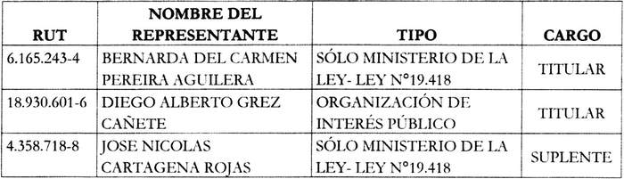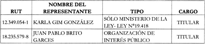1.- Proclámase, mediante la presente resolución, a los y las representantes de las organizaciones de interés público electos para el Consejo Nacional y los Consejos Regionales, según la individualización que a continuación se detalla: