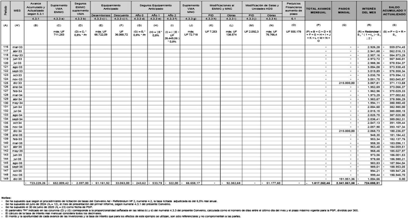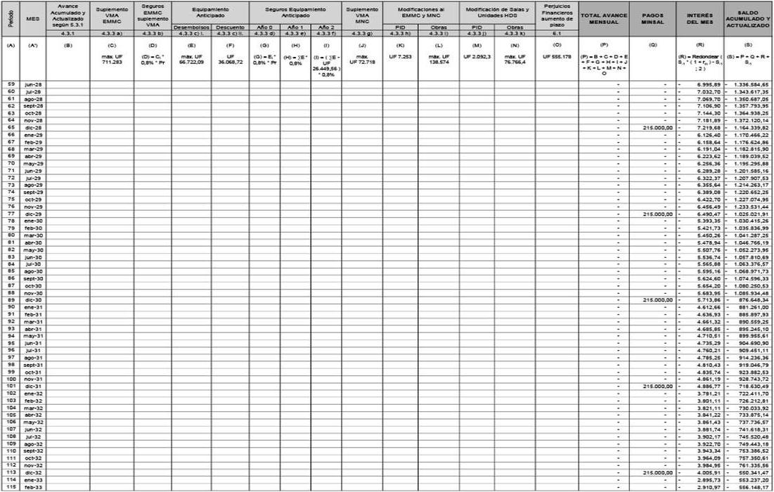 a. El último día hábil del mes de diciembre de 2025, Minsal pagará a la Sociedad Concesionaria un máximo de UF 215.000.- (doscientas quince mil Unidades de Fomento).