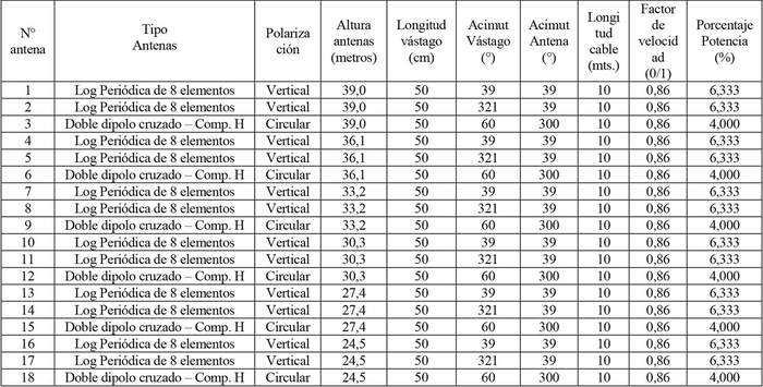 - Tipo de antena : Arreglo de 12 Log Periódica