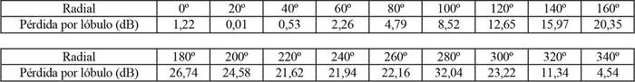 - Diagrama de radiación horizontal, de acuerdo a la siguiente tabla: