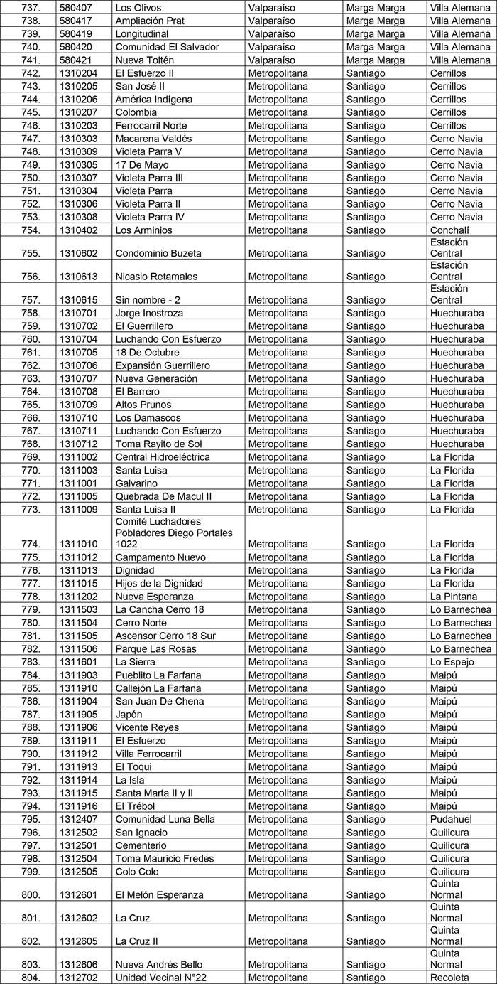 G. Con posterioridad, se verificó que el Anexo 2 de la resolución exenta contiene un error al incorporar y señalar 1.425 asentamientos precarios en el Catastro Nacional de Campamentos, en circunstancias que correspondía incluir y decir 1.432 asentamientos precarios.