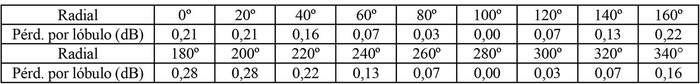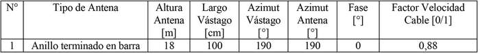 - Arreglo de antena de acuerdo a la siguiente tabla: