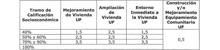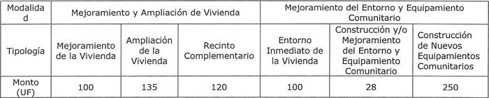 El monto máximo para financiar proyectos de edificaciones comunitarias nuevas ascenderá a 8.000 Unidades de Fomento. El monto máximo para financiar mejoramiento de otros equipamientos comunitarios y/o productivos ascenderá a 3.000 Unidades de Fomento.