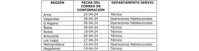 d) Que, para el presente proceso de selección, los distintos Servicios de Vivienda y Urbanización participantes dieron cumplimiento a lo señalado en el inciso tercero del resuelvo 1. de la resolución citada en el visto c), relativo a presentar acta de calificación condicional o definitiva, según corresponda.