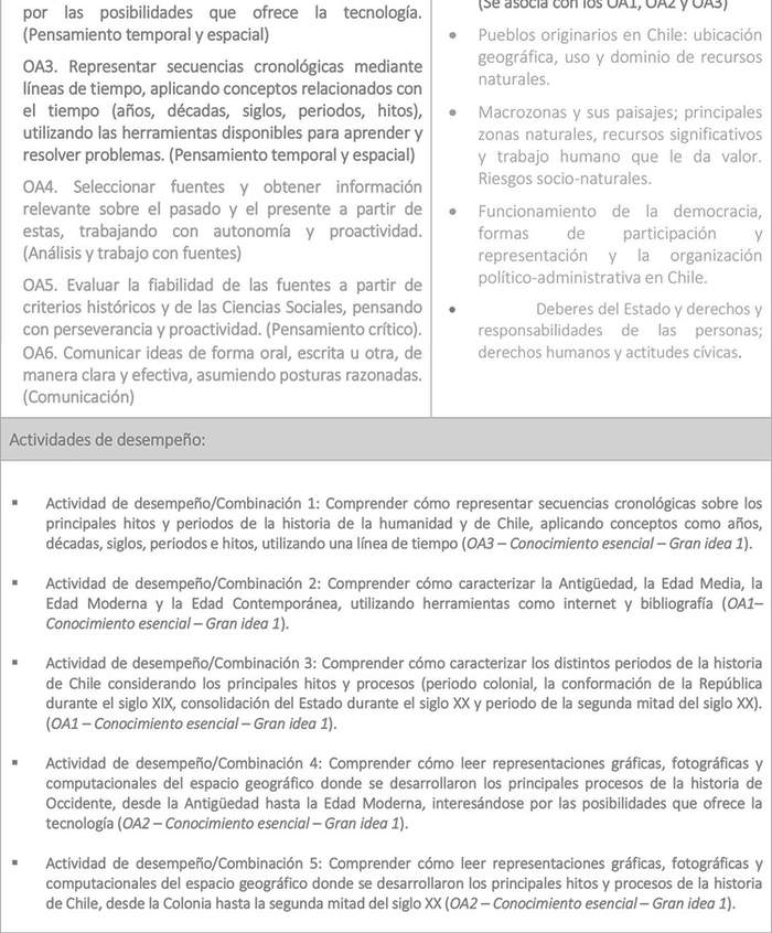 g) Conocer los hitos y principales procesos de la historia de Chile y su diversidad geográfica, humana y socio–cultural, así como su cultura e historia local, valorando la pertenencia a la nación chilena y la participación activa en la vida democrática.