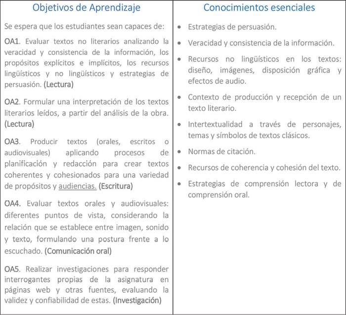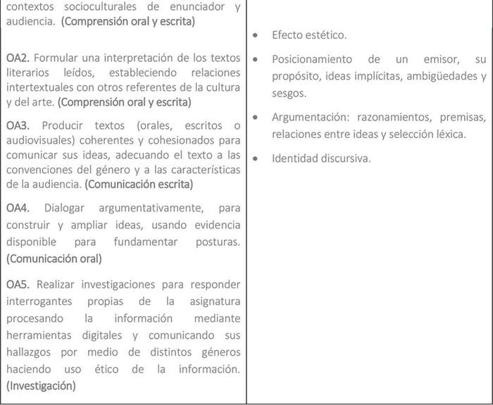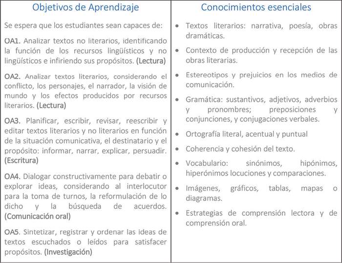 Lenguaje y Comunicación / Lengua y Literatura.