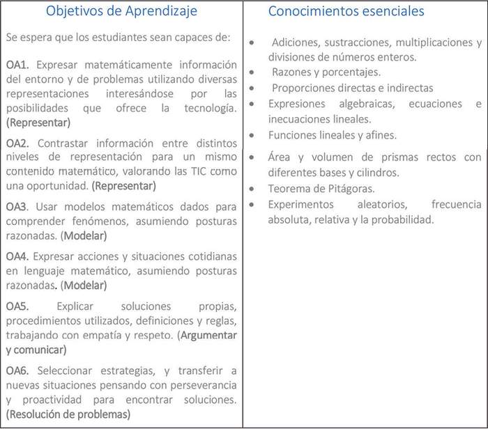 La rapidez con que avanza el conocimiento y la necesidad de las personas de contar con capacidades para procesar grandes flujos de información, responder al cambio, adaptarse y ser flexibles, ponen en el centro del debate la pregunta por aquello que es relevante enseñar en la escuela. "¿Qué vale la pena enseñar en la escuela?, ¿Qué es esencial en una disciplina dada?" y "¿Cuáles son los conceptos que permanecen mucho tiempo después de que los estudiantes se han graduado de la escuela?" (1) , son preguntas que se han planteado respecto a la educación del siglo XXI y que son especialmente pertinentes para la EPJA. Ya sea por su valor práctico o por el "enriquecimiento de su visión de mundo", la pregunta por las "ideas" y aprendizajes que los estudiantes pondrán en uso a lo largo de sus vidas es un elemento articulador de esta propuesta de Bases Curriculares para la educación de personas jóvenes y adultos.(2)