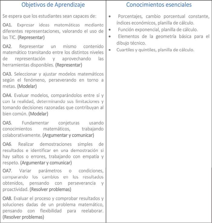 g) Comprender y aplicar conceptos, procedimientos y formas de razonamiento matemático para resolver problemas numéricos, geométricos, algebraicos y estadísticos, y para modelar situaciones y fenómenos reales, formular inferencias y tomar decisiones fundadas.