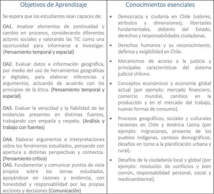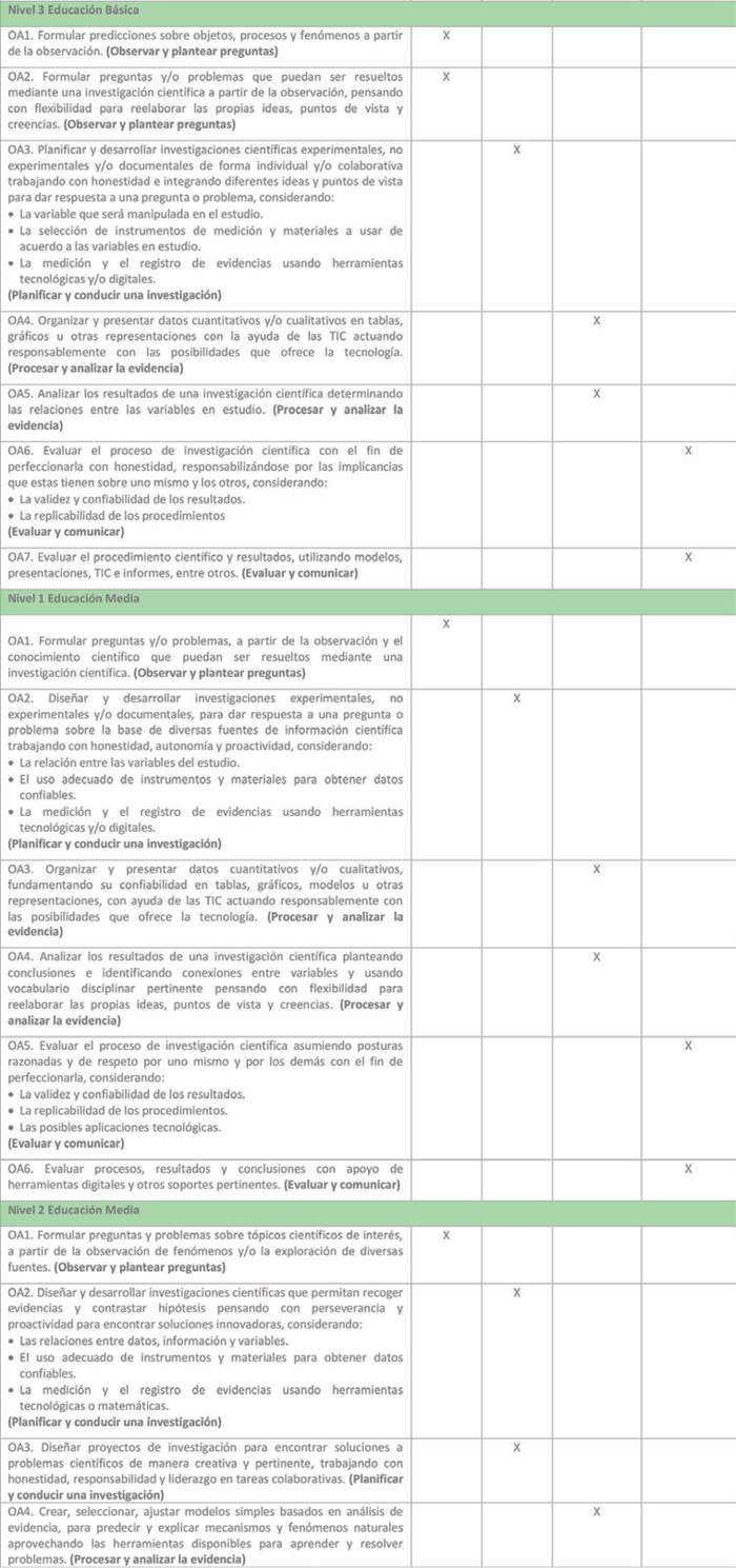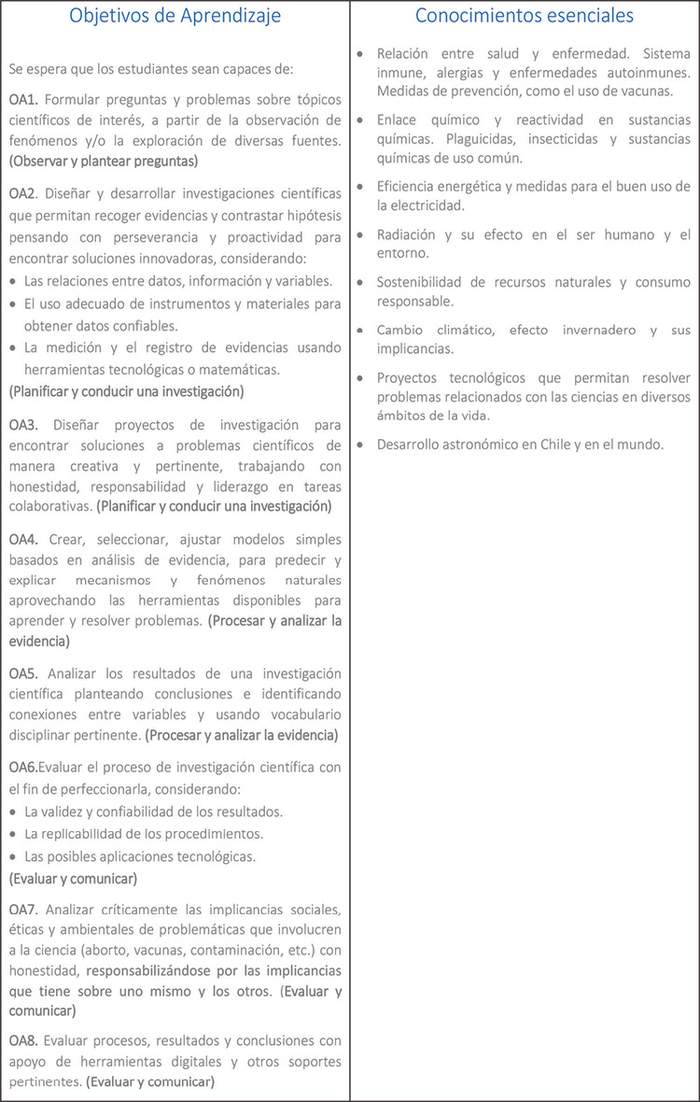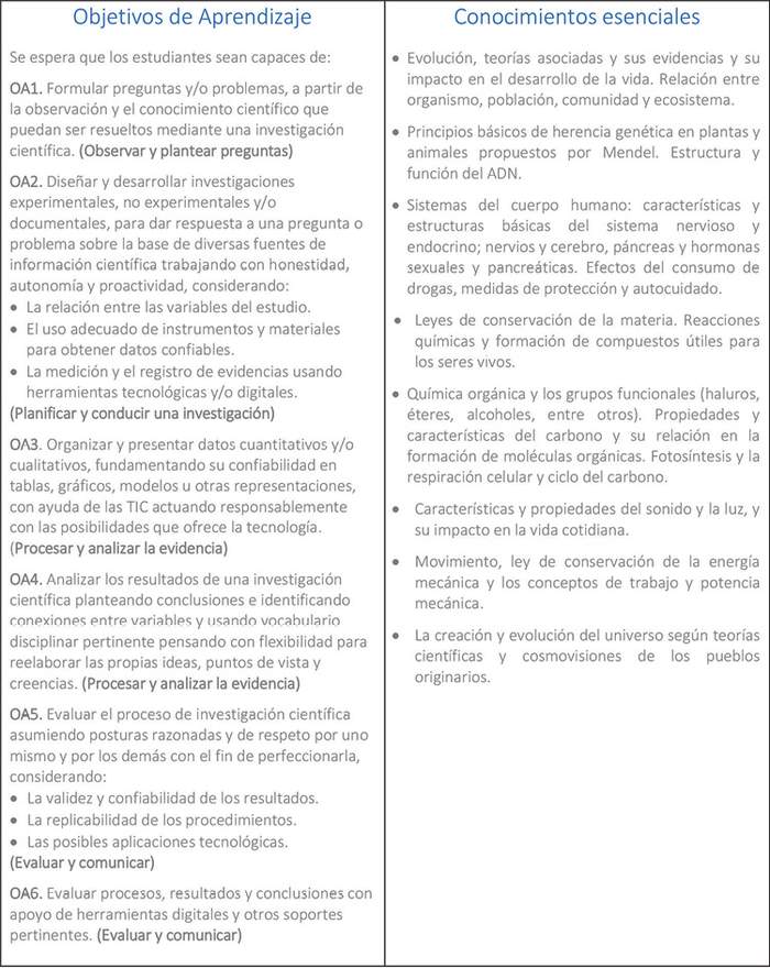 Consistente con lo anterior, las presentes Bases Curriculares responden a los Objetivos Generales que la LGE establece para la Educación Básica y la Educación Media, descritos en los artículos 29 y 30, respectivamente, y apuntan al desarrollo de conocimientos, habilidades y actitudes que permitan al estudiantado.