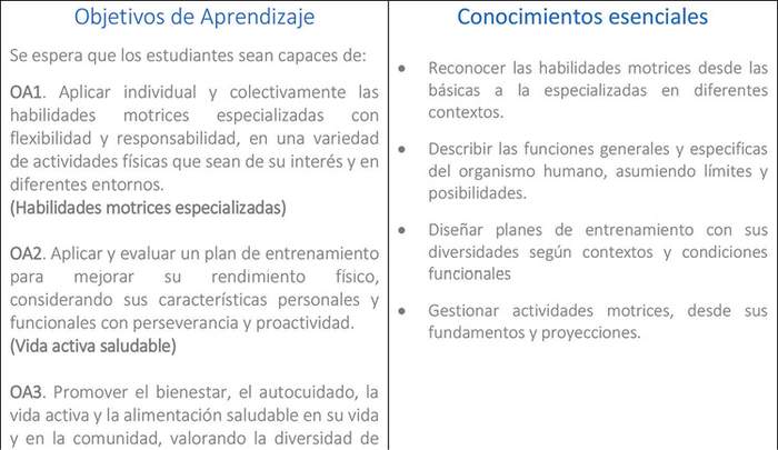 Para el desarrollo de las habilidades motrices especializadas y emergentes, se promueve la utilización de diversas manifestaciones socio-motrices que consideren aspectos de la cultura juvenil, cuya implementación dependerá de los contextos, las condiciones geográficas y climáticas, la infraestructura disponible, los intereses y la realidad cultural de los estudiantes. Finalmente, se considera oportuno respetar los procesos socioemocionales contextuales en el aula, generando espacios que resguarden el desarrollo individual y comunitario.