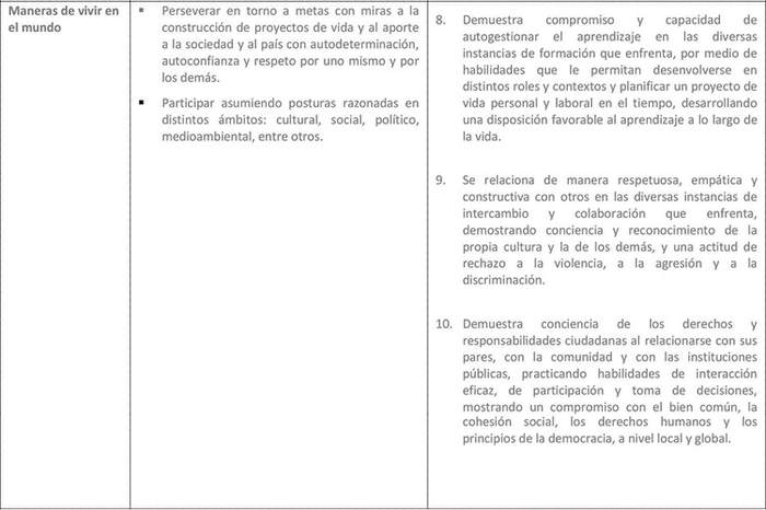 6. Los objetivos de aprendizaje de habilidades y actitudes nucleares permitirán a los estudiantes jóvenes y adultos seguir aprendiendo a lo largo de su vida. El aprendizaje a lo largo de la vida se ha definido como "el conjunto de todos los procesos educativos, formales, no formales e informales, gracias a los cuales personas consideradas adultas por la sociedad a la que pertenecen desarrollan y enriquecen sus capacidades para la vida y el trabajo, tanto en provecho propio como en el de sus comunidades, organizaciones y sociedades"(3). Esto es consistente con las demandas del mundo actual, en que el desarrollo de las sociedades y de las economías requiere que las personas adultas cuenten con habilidades y conocimientos para participar y beneficiarse de las nuevas oportunidades y los cambios estructurales que estas experimentan, y puedan enfrentar el conocimiento, su expansión y cambio constante de manera competente y eficaz, pudiendo desarrollar proyectos personales y contribuir al desarrollo de la sociedad.