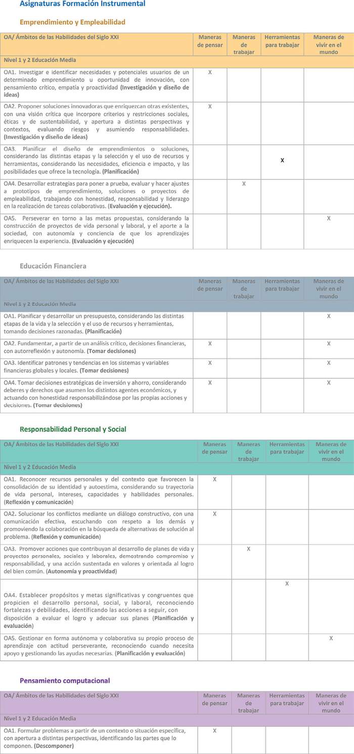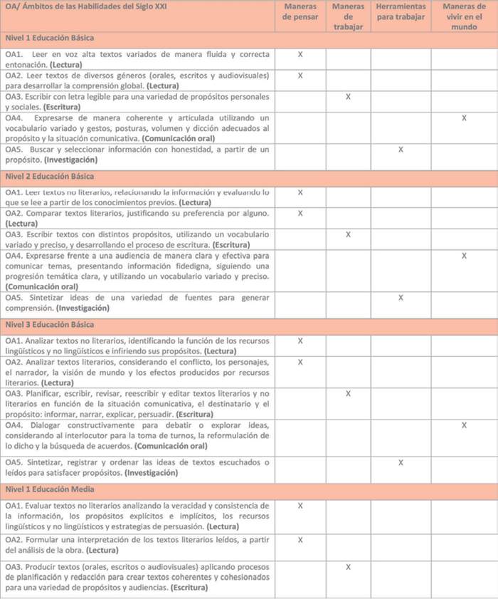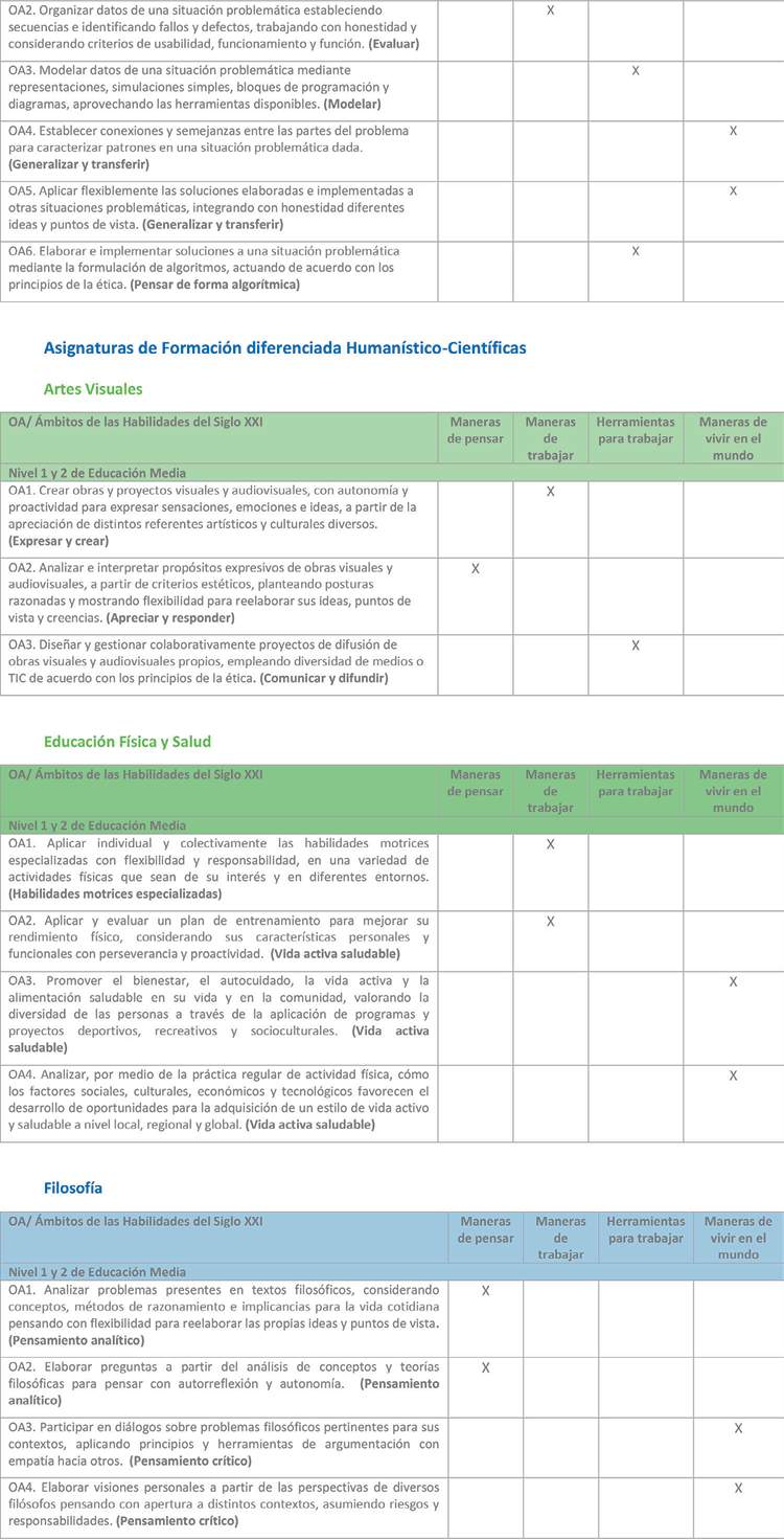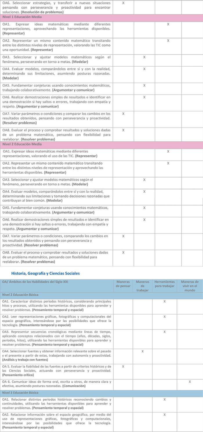 Estas bases curriculares proponen un rediseño curricular que ha sido elaborado a partir del marco de las Habilidades del siglo XXI, que opera como foco formativo del currículo y principio de construcción de los objetivos de aprendizaje. Las habilidades del siglo XXI son un conjunto de habilidades, actitudes y disposiciones que se consideran fundamentales, y que están interrelacionadas con el conocimiento que, en su conjunto, permiten a los estudiantes contar con las herramientas necesarias y una formación integral que les permitirán desenvolverse adecuadamente con el fin de satisfacer las cambiantes demandas de la sociedad y del mercado laboral, enfrentando con mayor preparación los desafíos del futuro.