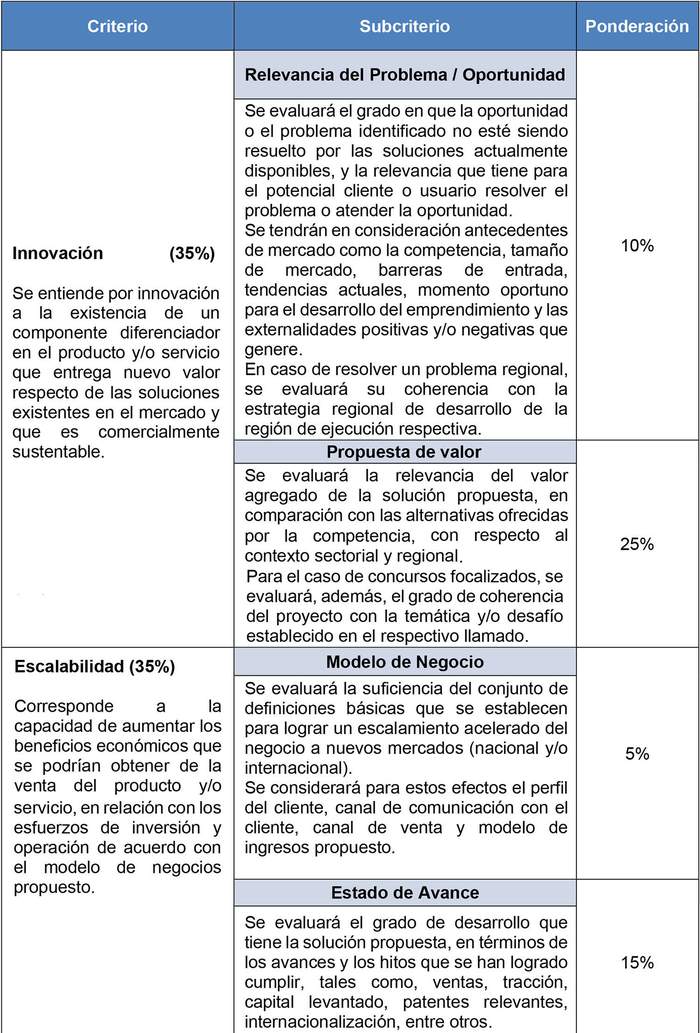 El presente instrumento de financiamiento está orientado a apoyar emprendimientos innovadores, esto es, proyectos que presenten un nuevo o mejorado producto o servicio respecto de otras soluciones ya disponibles, que corresponda a una creación del equipo emprendedor, que atienda una problemática u oportunidad relevante, al menos, a nivel regional, y tenga potencial para expandirse a nuevos mercados.