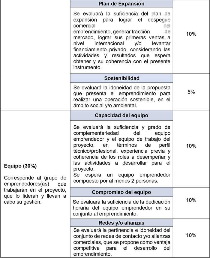 Apoyar a emprendedores(as) que cuenten con proyectos de alto potencial de crecimiento (en adelante "emprendimientos"), que hayan finalizado las etapas de creación y puesta en marcha, mediante el cofinanciamiento de actividades para el diseño y ejecución de planes de negocio a escala global, la expansión comercial de los emprendimientos y su preparación para conectarse con la siguiente etapa de financiamiento privado.