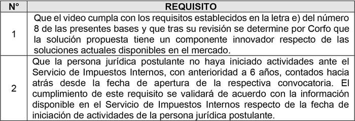 El Beneficiario, al momento de la postulación, deberá estar ejecutando un emprendimiento innovador, de acuerdo con la definición señalada en el numeral 1 precedente, y cumplir, además, con los siguientes requisitos: