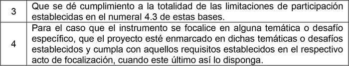 Aquellos proyectos que no cumplan con los requisitos indicados en el cuadro precedente serán declarados no admisibles y, por tanto, no avanzarán a las siguientes instancias de revisión.