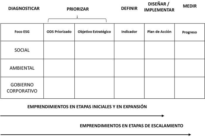 d) Disponer, durante la ejecución del proyecto, de una estrategia que permita diagnosticar, priorizar, definir indicadores, implementar un plan de acción de medidas iniciales y medir el progreso, que contribuyan a realizar una operación sostenible del emprendimiento.