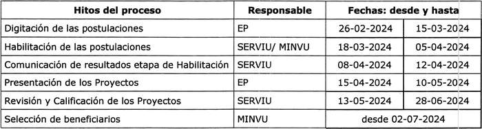 Reemplázase en el resuelvo N° 7 el cuadro correspondiente a los plazos de procesos y fases de postulación por el siguiente: